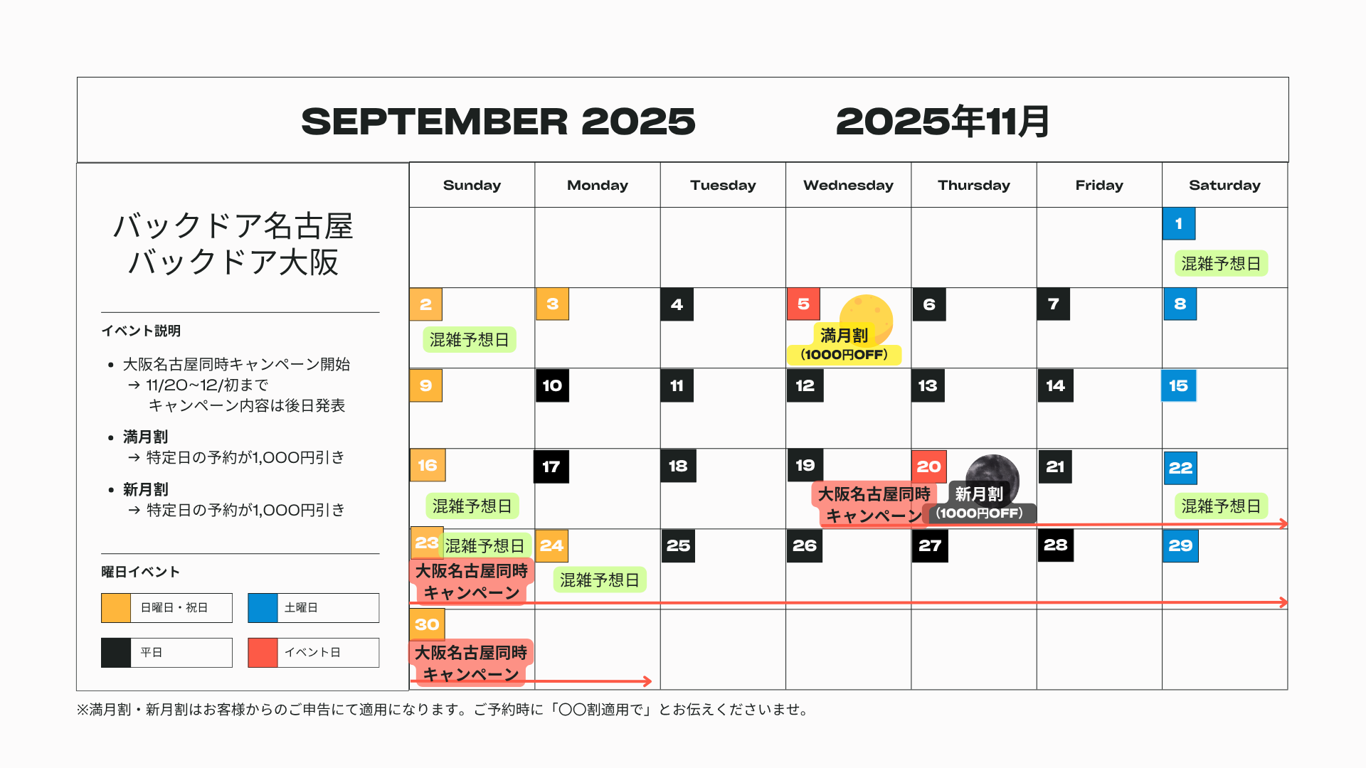 お知らせ2025.11.01【バックドア名古屋】2025年11月のスケジュール